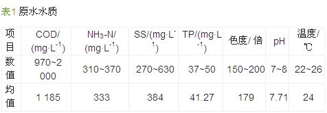 原水來(lái)自某生物制藥有限公司,該公司的綜合廢水處理采用“調(diào)節(jié)池+一級(jí)水解酸化池+CASS池+二級(jí)水解酸化池+接觸氧化池+二沉池”工藝,本試驗(yàn)用水取自該公司污水處理廠的一級(jí)水解酸化池出水,一級(jí)水解酸化池的進(jìn)水是經(jīng)過(guò)調(diào)節(jié)池和物理處理后的出水。該公司主要生產(chǎn)輔酶Q10,廢水主要污染物為生物發(fā)酵剩余的營(yíng)養(yǎng)物質(zhì)、生物代謝產(chǎn)物等。原水的水質(zhì)水量變化較大,其成分復(fù)雜,碳氮營(yíng)養(yǎng)比例失調(diào)(氮源過(guò)剩),硫酸鹽和懸浮物含量高,廢水帶有較重的顏色和氣味,易產(chǎn)生泡沫,含有具有抑菌作用的難降解物質(zhì)。原水水質(zhì)情況見(jiàn)表1。