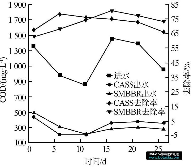 圖2 CASS和SMBBR對(duì)COD的去除效果