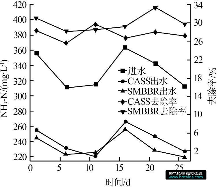 圖3 CASS和SMBBR對(duì)NH3-N的去除效果