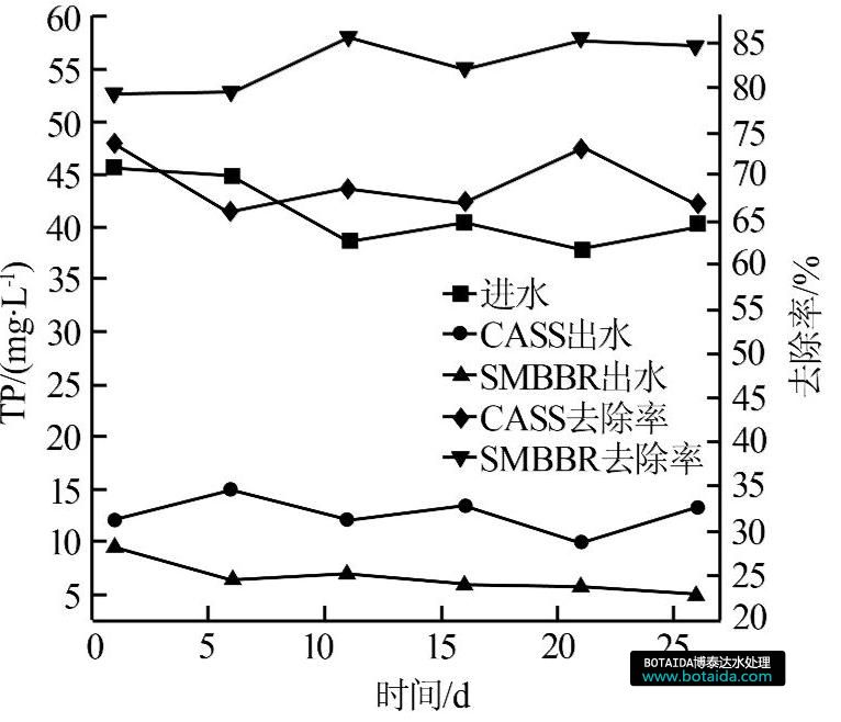 圖4 CASS和SMBBR對(duì)TP的去除效果