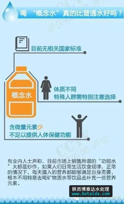 “概念水”含微量元素少,不足以提供人體保健功能。正常的情況下,每天攝入的營(yíng)養(yǎng)都能夠滿足自身需要,根本不用特意去喝礦物質(zhì)水等飲品去補(bǔ)充一些營(yíng)養(yǎng)元素。水只是新陳代謝的搬運(yùn)工,不必過多擔(dān)心純凈水會(huì)影響健康,飲水安全就好。