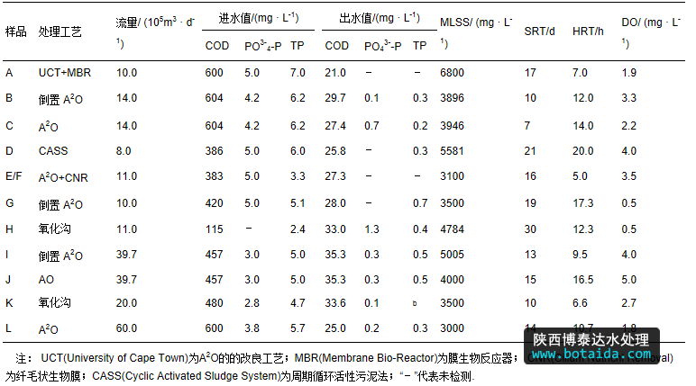表1 活性污泥樣品對應的污水處理系統(tǒng)的運行參數及進出水指