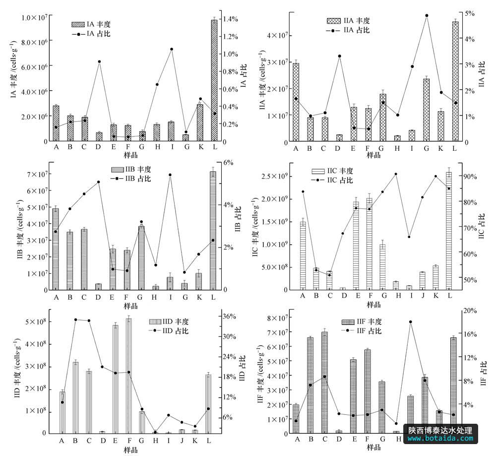 本研究選擇9個具有代表性的大型市政污水處理廠,分析不同運行狀況的污水處理廠活性污泥中C and idatus Accumulibacter主要分支(I、IIA、IIB、IIC、IID、IIF)的豐度及分布特點,揭示污水處理廠C and idatus Accumulibacter進化枝水平菌群結構、豐度與工藝運行的相關性.