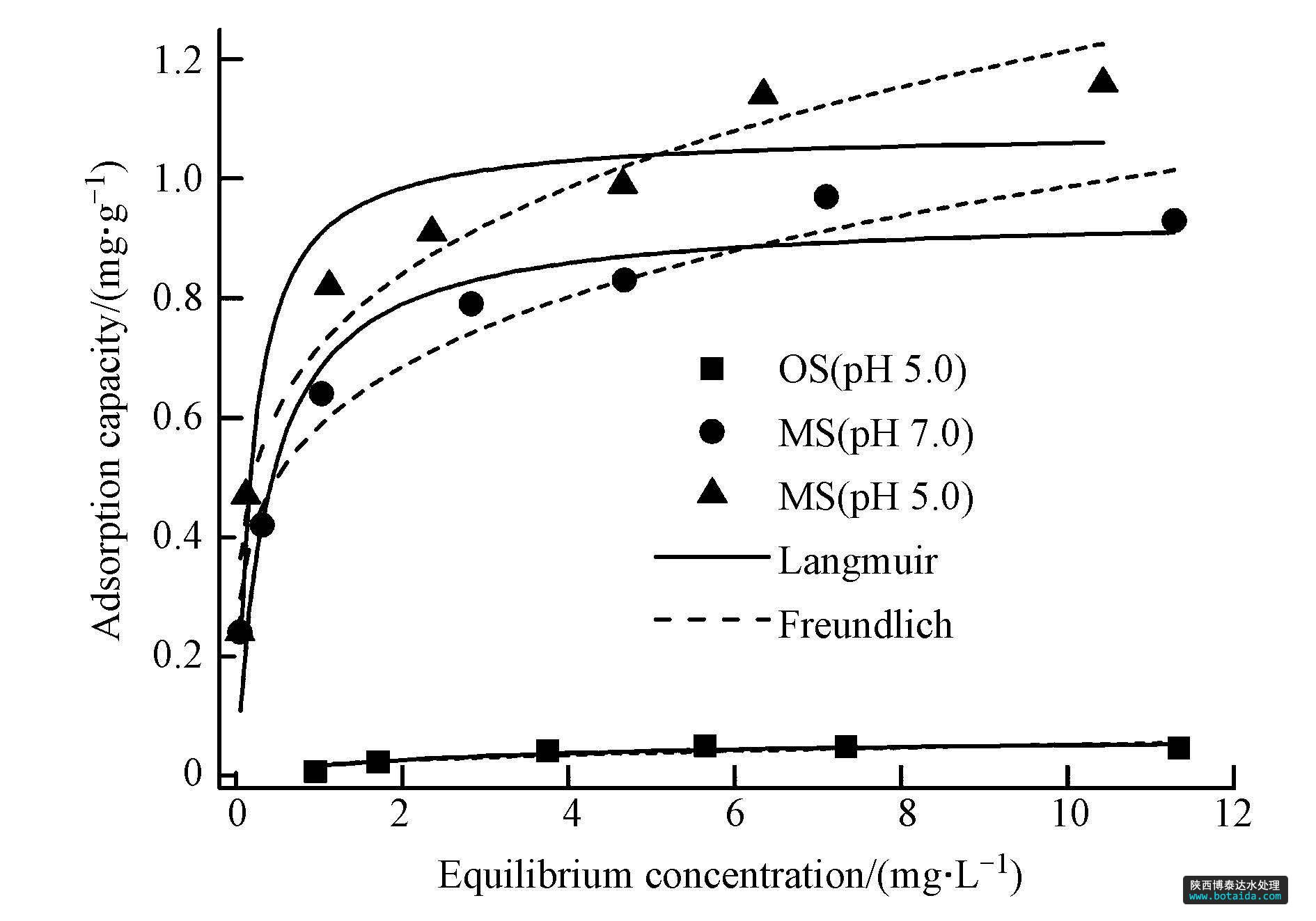 對(duì)磷吸附結(jié)果分別用Langmuir模型式(2)與Freundlich模型式(3)進(jìn)行擬合.