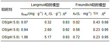 其中,qe為吸附平衡吸附量(mg · g-1),qmax為吸附劑飽和吸附量(mg · g-1),ce為平衡時(shí)溶液中剩余磷濃度(mg · L-1),kL為與熱力學(xué)有關(guān)的常數(shù)(L · mg-1),kF為與吸附強(qiáng)度有關(guān)的常數(shù)(L · g-1),n為與吸附能力有關(guān)的常數(shù).