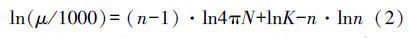 式中:μ為表觀黏度(mPa · s); N 為轉(zhuǎn)速(r · s-1); K為流體稠度系數(shù)(Pa · sn); n為流體流變指數(shù)(無因次).