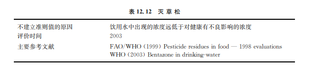對大鼠和小鼠的長期研究沒有顯示潛在的致癌性。體內和體外多項的試驗表明滅草 松不是遺傳毒物。JMPR依據小鼠兩年喂飼試驗的血液病學效應將滅草松的ADI值設置 為0~0.1mg/kgbw,由此推導出以健康為基準的準則值為300μg/L。但由于滅草松存 在的濃度水平遠低于產生健康風險的水平,因此沒有必要考慮建立基于健康的滅草松準 則值。