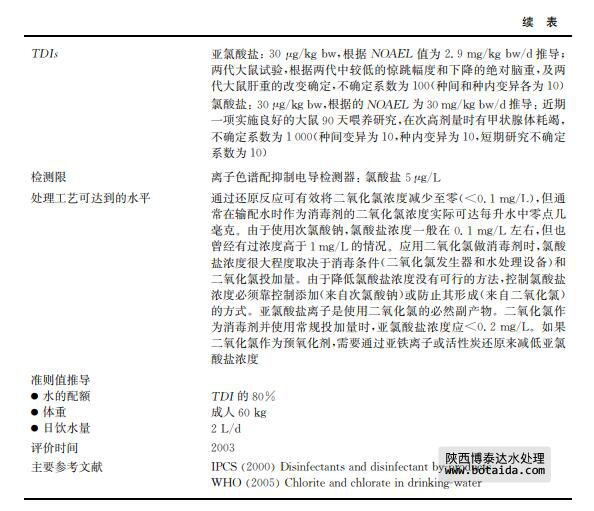 二氧化氯已被證明在試驗(yàn)小鼠圍產(chǎn)期會(huì)損害其神經(jīng)行為和神經(jīng)發(fā)育。在飲用水研究 中,接觸二氧化氯的老鼠和猴子也已觀察到會(huì)伴有甲狀腺激素顯著抑制的現(xiàn)象。尚未確定 二氧化氯的暫行準(zhǔn)則值,因?yàn)樗杆偎鉃閬喡人猁},而亞氯酸鹽的暫行準(zhǔn)則值能夠充分防 止二氧化氯的潛在毒性。該化合物的味覺(jué)閾值和嗅覺(jué)閾值是0.4mg/L。
