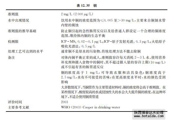 ?。桑校茫酉嚓P(guān)研究資料表明成人經(jīng)口攝入的銅濃度可接受范圍的上限是不確定的,但是 成人攝入量通常范圍是數(shù)毫克每天(每天大于2或3mg),而不是更多的量。銅不良效應(yīng) 的評(píng)估僅依據(jù)攝入含銅污染的水后腸胃道所起的不良效應(yīng)。目前有關(guān)研究的毒理學(xué)資料 建立在實(shí)驗(yàn)動(dòng)物的基礎(chǔ)上,不能適用于人類的情況,不能用于確定銅濃度可接受范圍的上 限,但有助于確定不良反應(yīng)的作用方式。由于觀察到的腸胃道反應(yīng)受到消化道內(nèi)濃度較 高(比24h的攝入量還要高)銅干擾,銅導(dǎo)致腸胃道反應(yīng)的研究結(jié)果必須謹(jǐn)慎使用。近 期的研究描述了引起腸胃道反應(yīng)的飲用水中銅的閾值,但仍存在銅對(duì)敏感人群長(zhǎng)期效 應(yīng)的不確定性,例如,具有 Wilson?。ǜ味?fàn)詈俗冃裕┗蚝推渌w內(nèi)銅平衡代謝障礙 的人群。