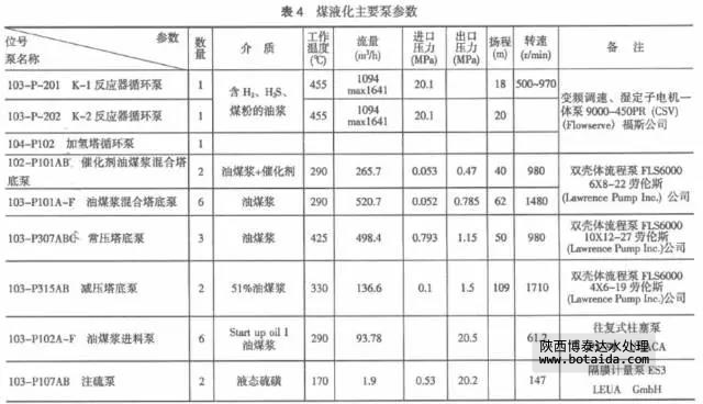 表4列出了煤液化主要泵參數(shù),這些泵當(dāng)時(shí)都是從國外進(jìn)口的,現(xiàn)在有些已能國產(chǎn),但還是有不少位號的泵需要通過技術(shù)攻關(guān)才能實(shí)現(xiàn)國產(chǎn)化。