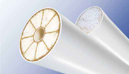 燒結(jié)活性炭濾芯(CTO):復(fù)合燒結(jié)活性炭棒凈水器的主要過(guò)濾介質(zhì)為活性炭棒?;钚蕴堪敉ǔS刹煌降幕钚蕴糠酆驼辰硬牧细邷?zé)贫伞F涮攸c(diǎn)由于活性碳粉的多孔結(jié)構(gòu)(據(jù)估算,3~5克活性碳粉的比表面積相當(dāng)于一個(gè)標(biāo)準(zhǔn)美式橄欖球場(chǎng)大小),燒制之后的活性碳棒非常致密,對(duì)于自來(lái)水中的異味、氣味、余氯和揮發(fā)性有機(jī)物等污染物具有很高的去除效率,部分廠家生產(chǎn)的優(yōu)質(zhì)活性炭棒甚至可以按照NSF53標(biāo)準(zhǔn)過(guò)濾孢子孢囊,無(wú)需使用微濾、超濾等額外的過(guò)濾介質(zhì)。由于復(fù)合燒結(jié)活性炭棒的優(yōu)異性能,該類產(chǎn)品可以直接用于飲用、烹飪等過(guò)濾要求很高的場(chǎng)合,也可以用作超濾、反滲透等凈水器最后一級(jí)改善過(guò)濾效果。