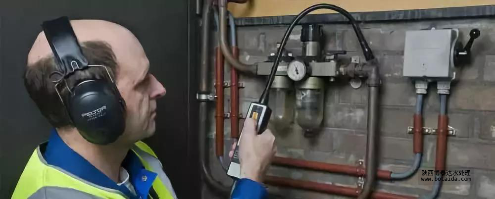 超聲波法是將水處理設備泄漏聲音中的可聽頻率局部截掉,僅僅使超聲波部分放大,對其檢測以發(fā)現泄漏。檢測時,可以直接用超聲波使表頭指針擺動,也可以采用使超聲波回到可聽頻率范圍內鳴笛的方法。