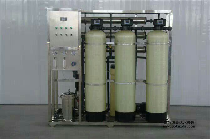 微型水處理設備的工藝流程:原水→原水加壓泵→多介質過濾器→活性炭過濾器→軟水器→精密過濾器→一級反滲透→PH調節(jié)→中間水箱→二級反滲透→純水箱→純水泵→微孔過濾器→用水點。