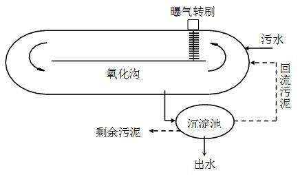 污水進(jìn)入氧化溝和活性污泥充分混合,再通過曝氣裝置特定的定位作用進(jìn)而產(chǎn)生曝氣推動,使得污水與污泥在閉合渠道內(nèi)成懸浮狀態(tài)做不停的循環(huán),污泥在循環(huán)中進(jìn)一步與污水充分混合,其中微生物與有機物充分反應(yīng),然后混著污泥的污水進(jìn)入二沉池,進(jìn)行固液分離,使污水得到凈化。