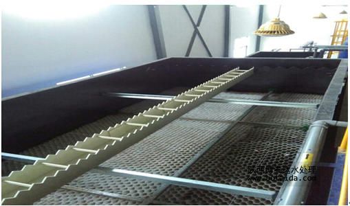 水解酸化池內(nèi)部可以不設(shè)曝氣裝置,控制停留時(shí)間再水解、酸化階段,不出現(xiàn)厭氧產(chǎn)氣階段,前兩個(gè)階段的COD去除率不是很高,因?yàn)樗哪康闹皇菍⒋蠓肿拥淖兂尚》肿佑袡C(jī)物,一般去除率在20%左右,產(chǎn)氣階段的COD去除率一般在40%左右,但這是產(chǎn)生的硫化氫氣體要進(jìn)行除臭處理,且達(dá)到產(chǎn)氣階段的停留時(shí)間要較前兩階段長(zhǎng),也就是要出現(xiàn)厭氧狀態(tài)。缺缺氧池內(nèi)要設(shè)置曝氣裝置,控制溶解氧在0.3-0.8mg/l,利用兼氧微生物及生物膜來降解廢水中的有機(jī)物,接觸氧化池內(nèi)的曝氣器要慎重選擇,既要保證供氧量,又要確保有利于生物膜的脫落、更新。一般不選用微孔曝氣器作為池底的曝氣器。