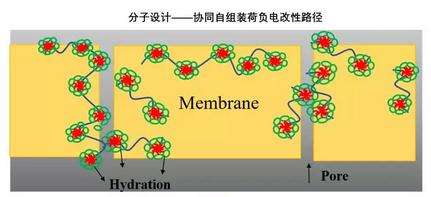 通過(guò)分子設(shè)計(jì),采用雙荷負(fù)電(兩親)嵌段共聚物自組裝形成的豐富而有序的拓?fù)浣Y(jié)構(gòu),對(duì)常規(guī)UF膜進(jìn)行協(xié)同自組裝荷負(fù)電改性,最終制得高度有序的不對(duì)稱(chēng)均孔荷負(fù)電功能超濾膜。